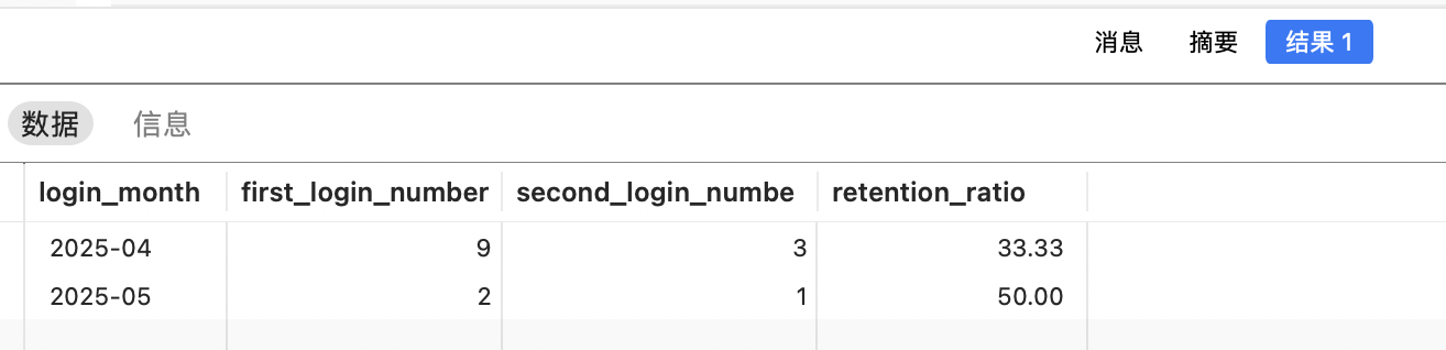 步骤3:关联两份数据,得出2025年4月、5月的次月留存率