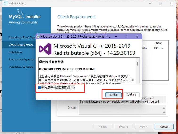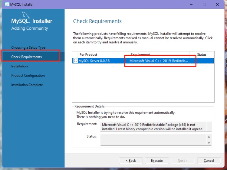 2、 检查依赖,一般需要安装Microsoft Visual C++的依赖,点击Execute进行下载,下载完安装就可以了