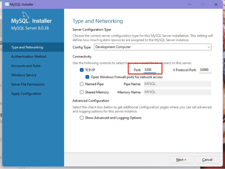 端口默认是3306,如果想改可以在这里修改,如果有个感叹号显示有冲突,应该是之前安装过mysql占用了3306端口没有清理干净,可以换一个端口比如3307,也可以先清理之前的mysql再回到这里使用3306端口