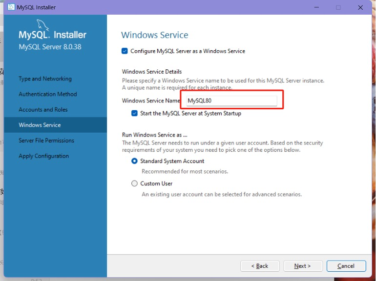 8、 配置服务信息,windows系统对于每一个运行的软件都称为服务,可以进行相关的配置,这里按默认配置即可