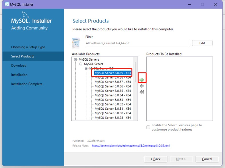 2、 然后选择需要安装的Products,然后点击向右的箭头➡️,把它放在待安装区域