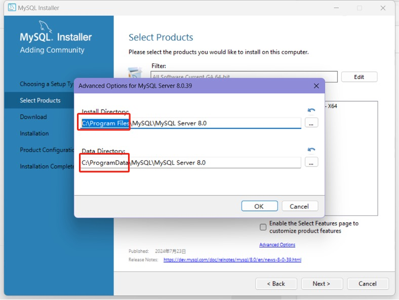 可以看到默认安装路径是C:\Program Files\MySQL\MySQL Server 8.0。如果要换目录,修改前面部分(C:\Program Files)即可