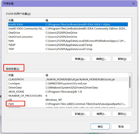 3、 点击环境变量,找到系统变量中的Path,双击打开