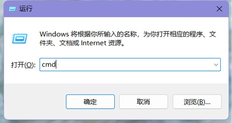 1、 打开运行窗口(Win键+R),然后输入cmd命令,打开命令行窗口