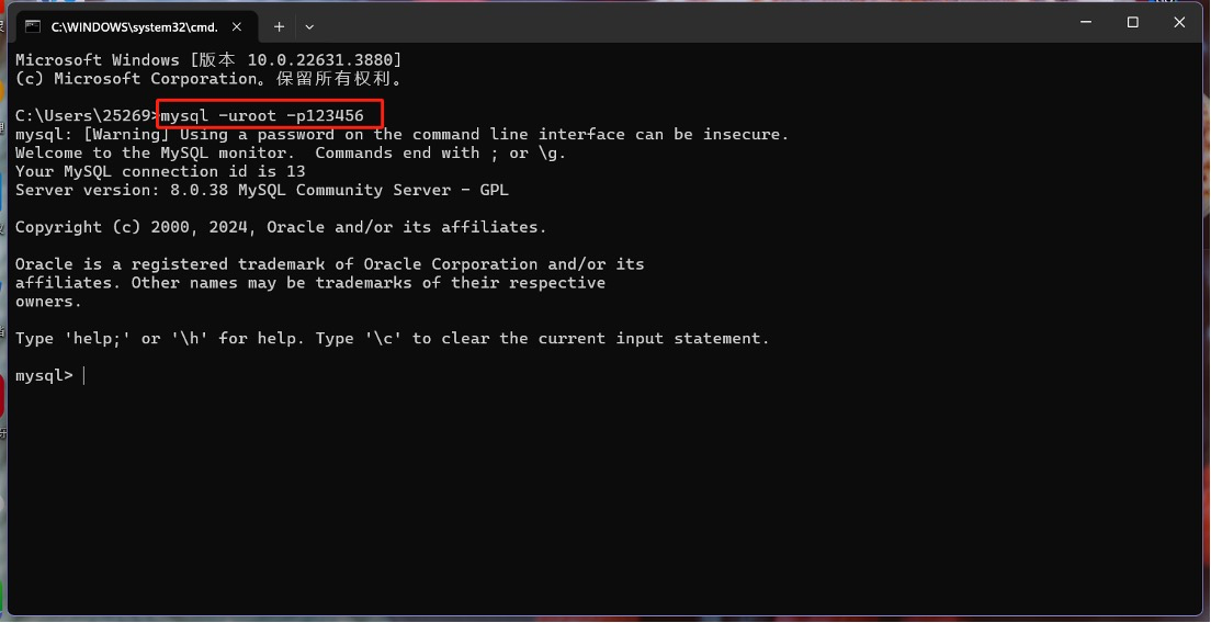 // 登陆命令(注意空格):mysql -u用户名 -p密码