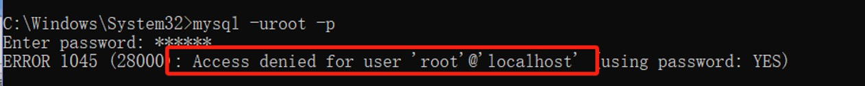 2、 按照步骤安装完成后,登录mysql失败,报错Access denied for user...,可以尝试不输入密码看是否能登录,若可以登录,应该是存在无密码用户,可以登陆后修改密码