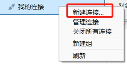 2、 打开navicat,在左侧栏中右键单击“我的连接”,选择“新建连接”