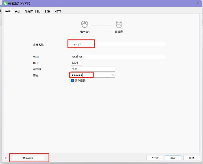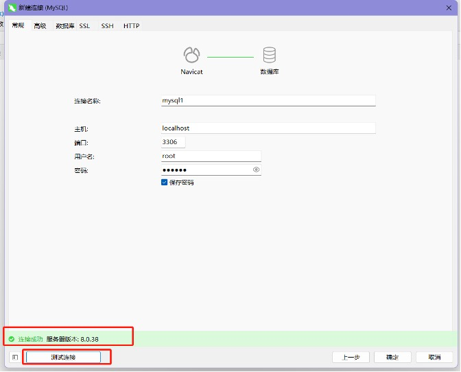 如果安装配置时端口不是3306,也需要修改,配置完后点击测试连接,下方会显示连接成功,然后点击确定即可添加完成