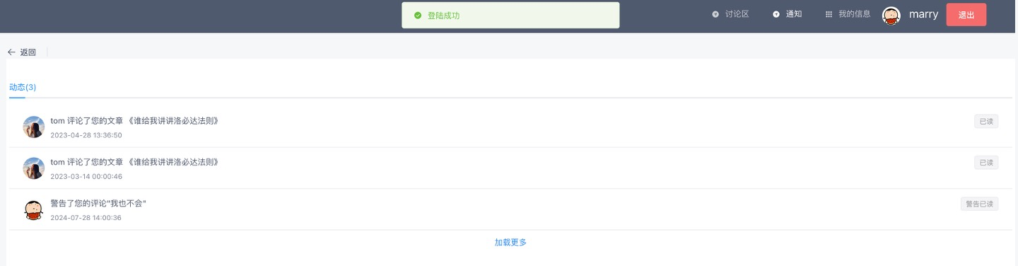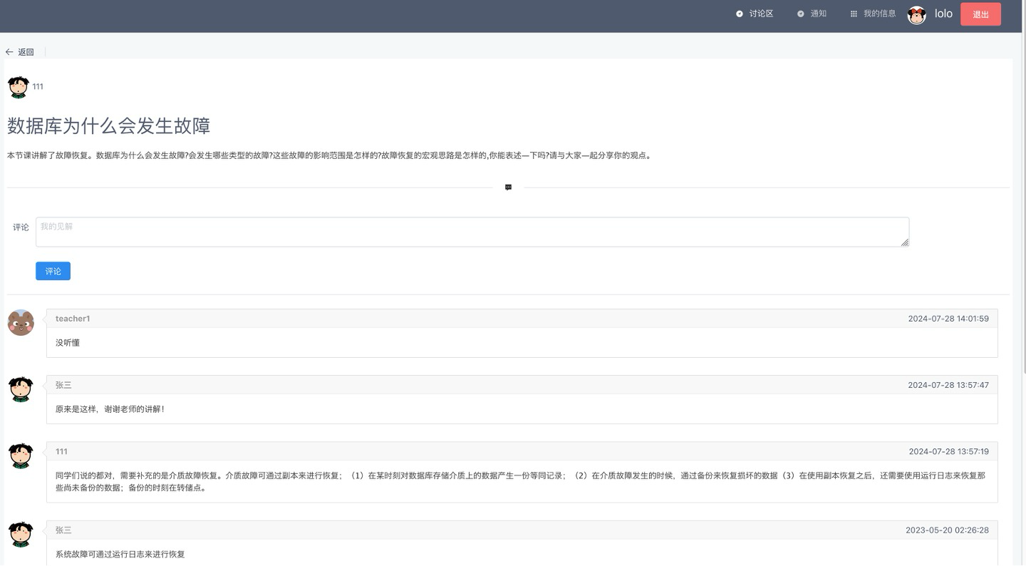 查看文章的具体内容,参与评论,老师角色还可以警告或删除评论